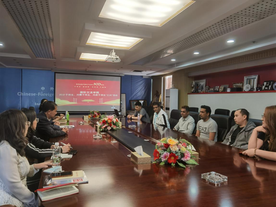 为深入推进党史学习教育,坚持把开展党史学习教育与为师生办实事结合起来,确保学习教育成果见到实效,2021年5月20日下午,beat365官网举办“我为师生办实事”留学生座谈会。本次会议由beat365手机版官网党总支书记屈原主持,教师党员和境内留学生参加会议。