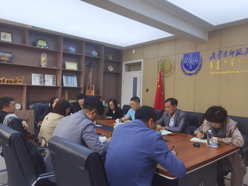 4月11日下午,蒙古学学院党委书记孟根巴根、教职工第一党支部书记包阿拉达日吐一行7人来beat365官网开展“两院携手,共启零基础语言教学探索之旅”主题党日活动。会议由beat365手机版官网党总支书记屈原主持,副院长张磊、对外汉语教研室部分教师参加会议。