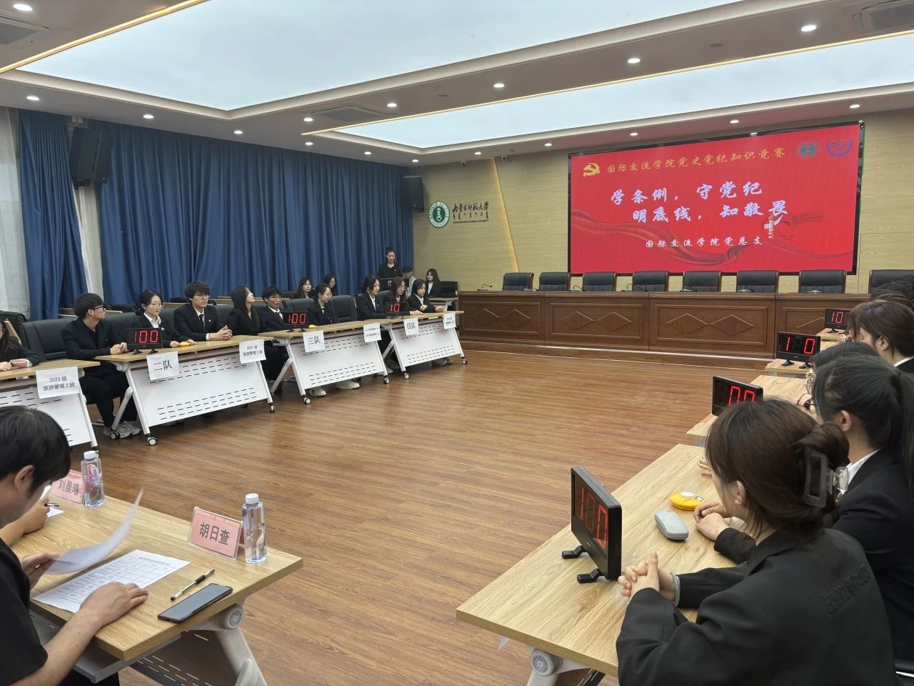 为了加强国交学子的党性教育和政治素养,检验学生对党史党纪知识的掌握程度,让国交学子深刻感受到党的光辉历程和伟大成就,增强对党的忠诚度和认同感。6月6日beat365手机版官网在行政楼举办了“学条例,守党纪,明底线,知敬畏”党史党纪知识竞赛决赛。竞赛是对学生进行党性教育的一次生动实践,让国交学子在参与中明确自身的责任和使命,树立正确的价值观和世界观。
