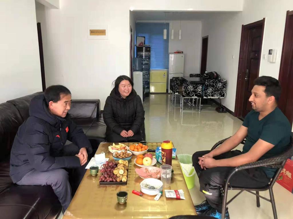 走访过程中,学院领导叮嘱留学生们在假期继续遵守疫情防控规定,加强安全防范意识,每日按时完成健康打卡,做好行程报备,尽量避免聚集性活动,遇到问题及时要向学院反映报告。此外,还为留学生们送上了新年礼物和祝福,希望每位留学生在中国过一个平安、祥和的春节。