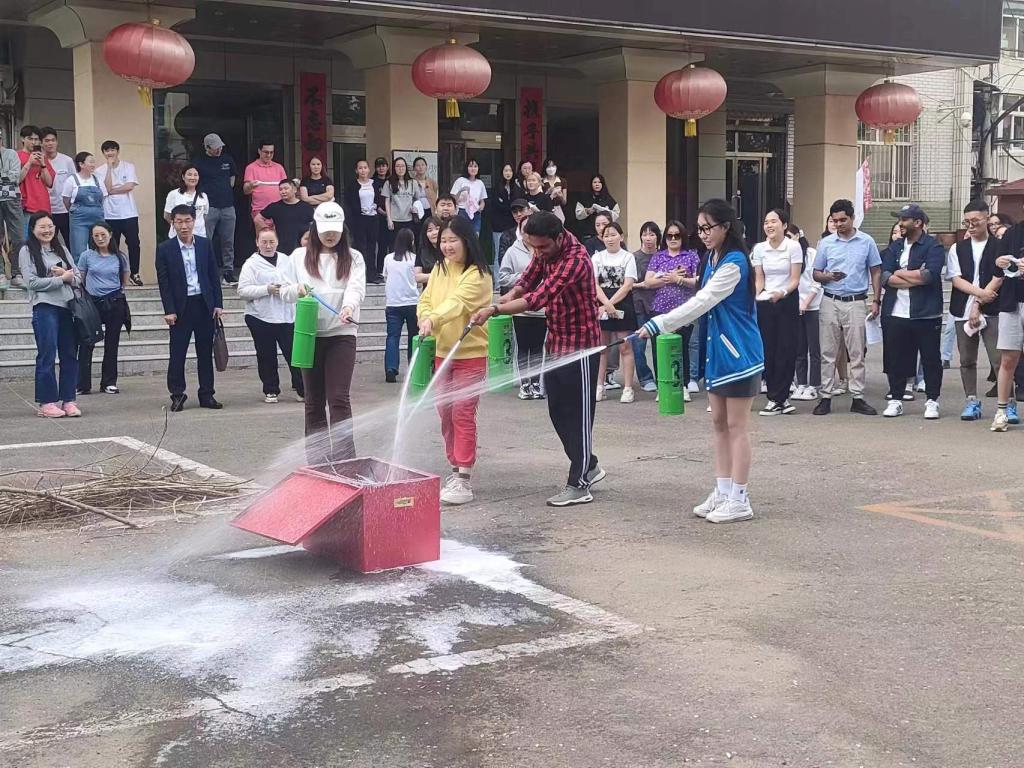 胡义峰警官从“消防安全三级责任制”、如何正确报警及扑救火灾方法、从常见火灾隐患的排查、灭火器的适用范围和正确操作等方面进行了生动举例讲解,并到留学生公寓对广大学生进行了如何疏散逃生、自救、防烟、灭火等实操培训。