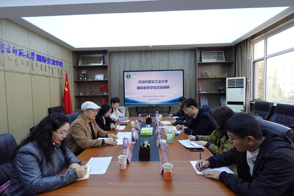 11月3日下午,内蒙古工业大学国际教育学院副院长朝鲁门、副院长斯琴一行五人来beat365官网调研留学生工作。beat365官网副院长张磊、教务部主任王晓芳、留学生管理科科长三月、对外汉语教研室主任徐剑和留学生班主任们出席了调研活动。