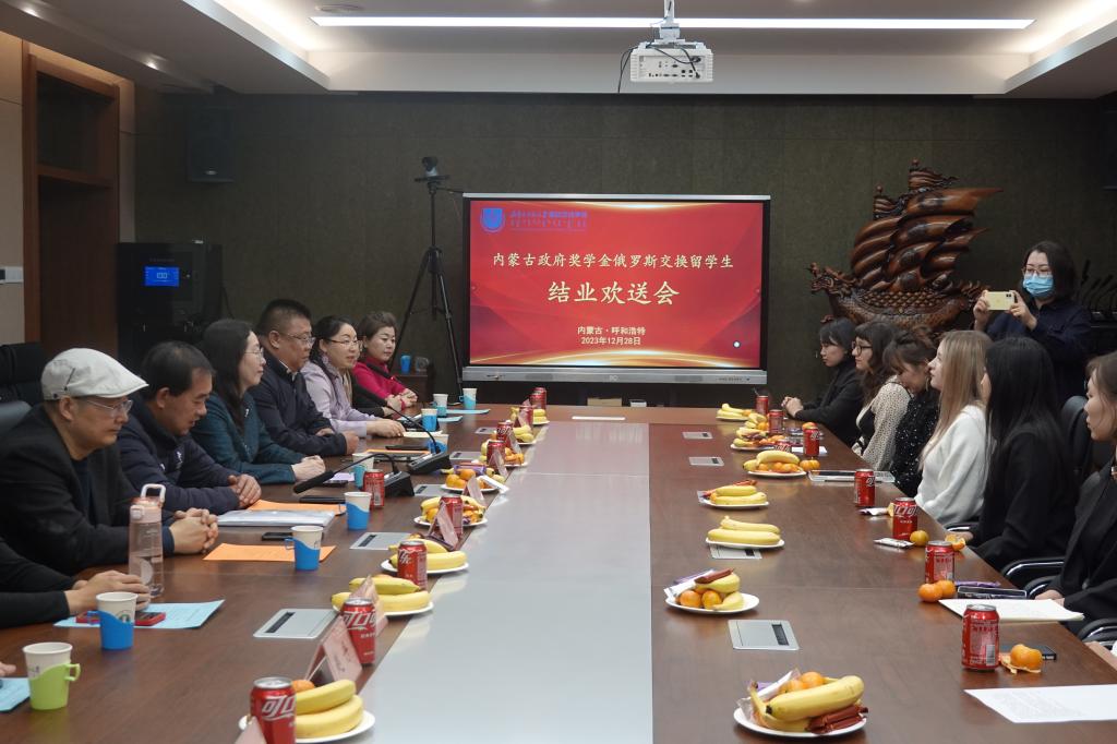beat365手机版官网于2023年12月28日下午在赛罕校区文史楼二号会议室举办了2023届俄罗斯交换留学生结业欢送会。beat365手机版官网党总支书记屈原、院长武海燕、副院长张磊、副院长郑月锋、学院相关老师们和10名俄罗斯留学生参加了会议。会议由三月老师主持。