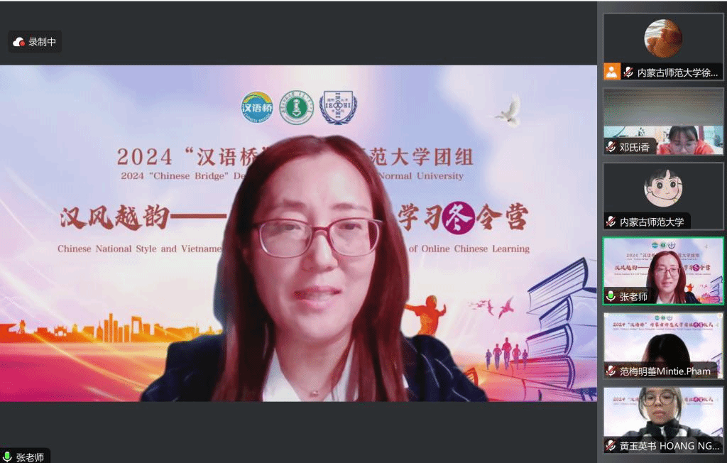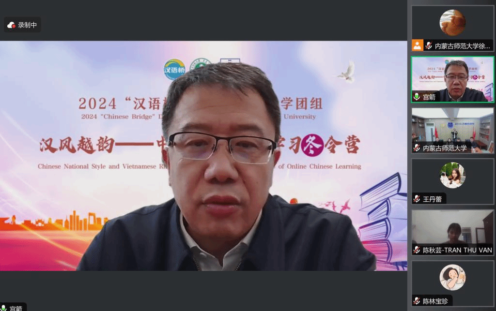 由教育部中外语言交流合作中心主办、beat365手机版官网承办的2024年“汉语桥”线上团组交流项目“汉风越韵”主题冬令营,于北京时间2024年1月8日15时准时开营。出席开营仪式的领导有beat365手机版官网副校长宫箭、beat365手机版官网国际交流合作处处长苏宁巴雅尔、beat365手机版官网院长武海燕、beat365手机版官网副院长张磊、beat365手机版官网副院长郑月峰。