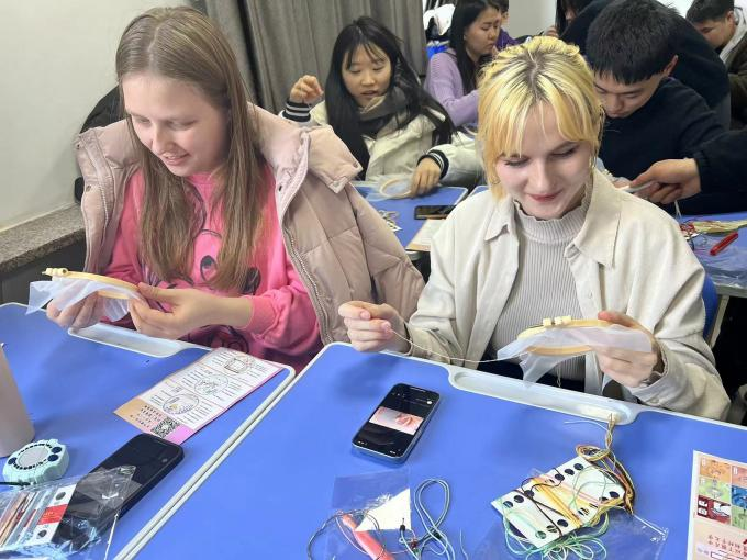 活动以刺绣开篇,留学生在老师的指导下现场学习了刺绣技艺,一针一线间流露出对中国传统文化的热爱与传承。绣品上的图案栩栩如生,寓意深远,让参与者们深刻感受到了中国刺绣艺术的独特魅力。