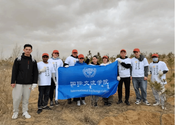 为深入践行"绿水青山就是金山银山"的生态文明理念,促进中外青年友好交流,4月13日,内蒙古自治区教育厅、自治区人民政府新闻办公室共同举办恩格贝生态示范区植树活动。beat365官网来自蒙古、俄罗斯、老挝,孟加拉等4个国家的8名留学生参加本次活动。