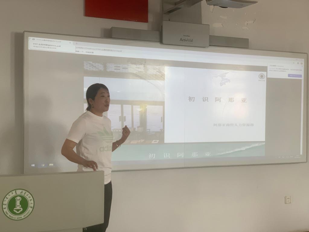 阿那亚人力资源部经理杜亚男从阿那亚公司宗旨引出话题,旨在使同学们了解阿那亚的企业组织架构以及企业经营模式,接下来杜经理对企业的项目内容、商业运营以及实习要求进行了详细的解释和说明。她指出实习是一个提前体验职场生活的机会,合理地运用此次机会可以帮助同学们强化独立执行任务的能力,熟悉实习部门管理、运作状况,培养个人能力,累积经验。