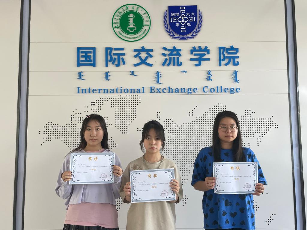 从左到右分别是演讲比赛三等奖获得者杨璞、白韵琪、辛硕