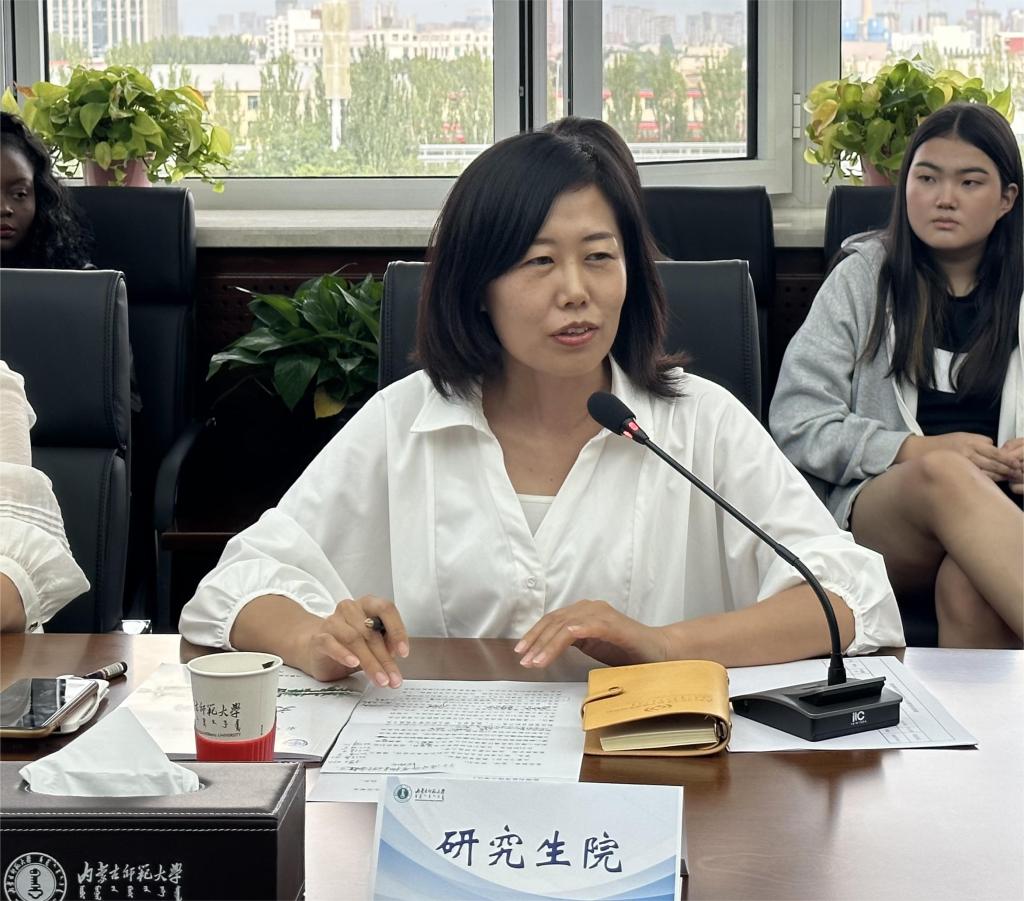 2023年9月17日下午,beat365手机版官网组织召开2023年入专业留学生交接会,会议在赛罕校区田家炳书院楼715会议室进行。研究生院副院长闫春梅,教务处副处长侯欣舒,beat365手机版官网院长武海燕,副院长张磊,经济管理学院副院长胡伟华、硕士生导师陈雅娟,地理科学学院副院长萨楚拉,民族学人类学学院副院长满达、博士生导师常宝,文学院副院长张钧、博士生导师张子程,心理学院副院长金童林,计算机科学技术学院白双成研究员,beat365手机版官网留学生管理工作相关负责人和入专业的22名留学生参加了本次会议。会议由张磊副院长主持。