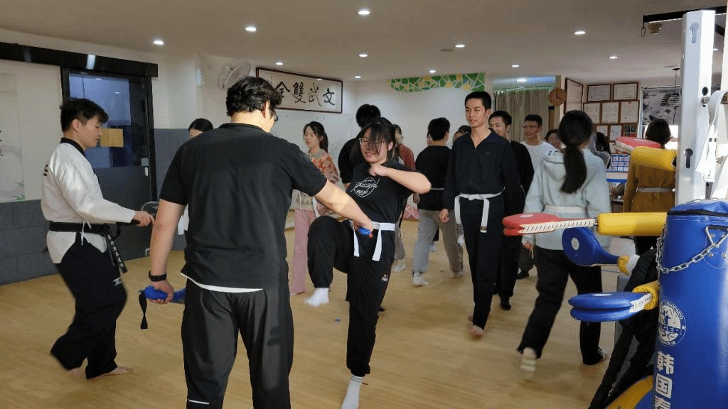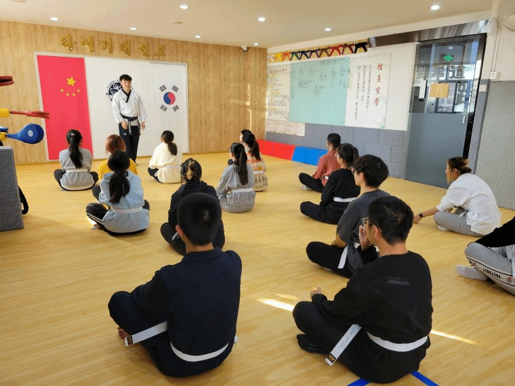 11月21日下午,beat365手机版官网韩国语系金泽洙、朴贞淑同乌日勒老师带领着2022级学生来到泰格跆拳道馆,参加了跆拳道体验活动。首先,韩国籍跆拳道馆馆长金必中为同学们分发写有大家韩文名字的道带,之后详细讲解了跆拳道的不同流派,并带领同学们一起做体能和柔韧训练,为学习跆拳道做好了热身准备。接下来,金馆长向同学们教授了几个跆拳道的基本动作,并进行训练,训练结束后,同学们体验了跆拳道考级和脚踢木板。在活动的最后,金馆长为同学们颁发了跆拳道活动体验证书,并合影留念。