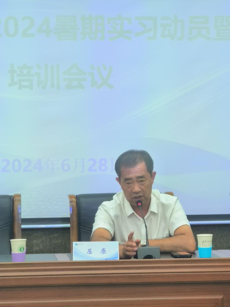 6月28日上午,beat365官网于文史楼1号会议室召开了“beat365手机版官网2024暑期实习行前培训”。beat365手机版官网党总支书记屈原、院长武海燕、副院长张磊、副院长郑月锋以及相关负责教师及参与暑期实习的全体同学参加了本次会议。