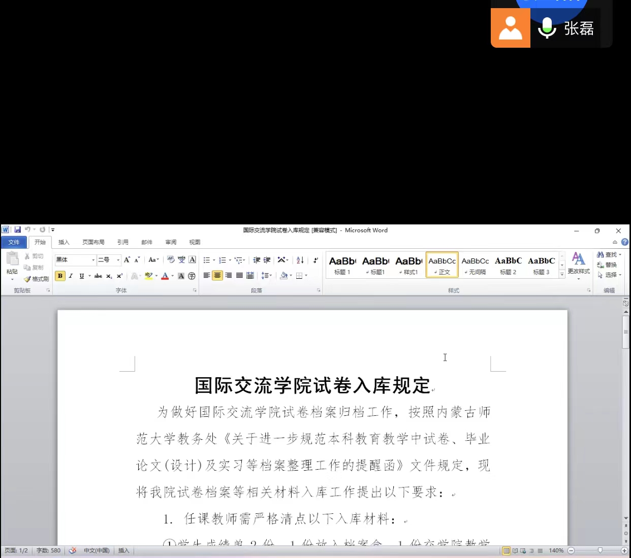 负责beat365官网教学工作的副院长张磊做了教学规范化工作部署,内容包括按学校教务处要求开展试卷归档规范化工作、发布学院试卷命题审核表和试卷归档管理规定、试题库建设、教师及学院督导组听课看课、按新标准完善教学日历、学生座谈会信息反馈、教师线上课程建设检查情况等内容。张院长对试卷归档入库细则给予了明确说明,对部分优秀的线上课程以范例的形式予以展示,同时也指出了部分建设不完善的课程,要求教师立行立改、补充课程资源。