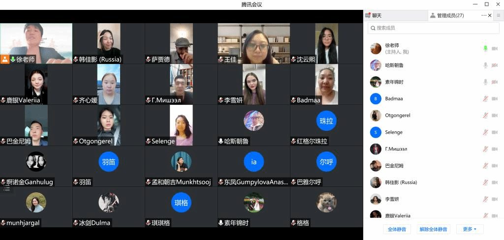 6月7日,beat365官网举办了留学生线上座谈会。对外汉语教研室全体教师及汉语预科班、俄罗斯交换生班、汉语言本科班、公共课班的来华留学生参加了此次座谈。