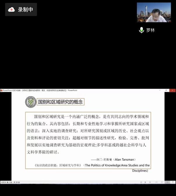 罗教授基于自身在国别和区域研究领域的的深厚积淀,分别从我国域外知识研究现状、美国区域研究的项目执行体系及其局限性、区域国别学的重要特征及我国发展现状、高校国别和区域研究的工作重点、基本要求、建设经验、以及理论基础与研究方法四个方面指出了国别区域研究的重要性和必要性。