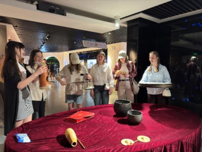 活动当日,beat365手机版官网武海燕院长、郑月锋副院长携来自俄罗斯、蒙古国等 “一带一路” 沿线国家的 20 余名中外学生代表,走进这座收藏着 3 万余件世界音乐文化艺术珍品的宝库。中国摄影家协会会员、内蒙古音乐文化艺术文物收藏家哈斯巴更老师,以其跨越国界的艺术收藏,为中外学生们呈现了一场多元文化音乐盛宴。当各国学生在馆内发现本国传统乐器时,文化共鸣被瞬间点燃。俄罗斯学生轻抚三角琴琴身,蒙古国学生热情讲解马头琴的独特韵味,现场化作不同文明交流对话的生动课堂。中国学生也积极参与其中,分享对中国传统音乐文化的理解,中外学生互动频繁,共同感受文化交融的魅力。