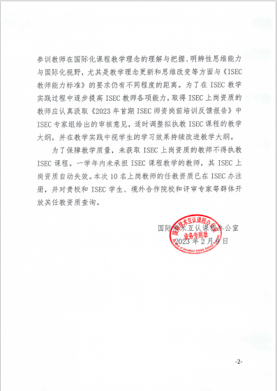 至此,beat365官网具有ISEC执教资格的教师已由2021年的11名增加到目前的33名,进一步为ISEC项目在beat365官网的顺利开展以及推进beat365官网国际化进程提供了师资保障。
